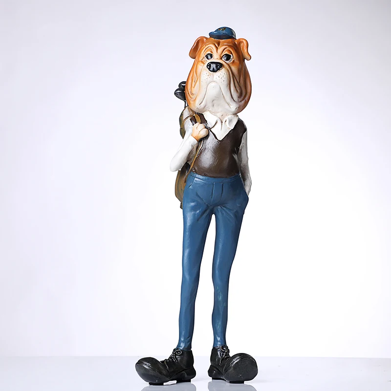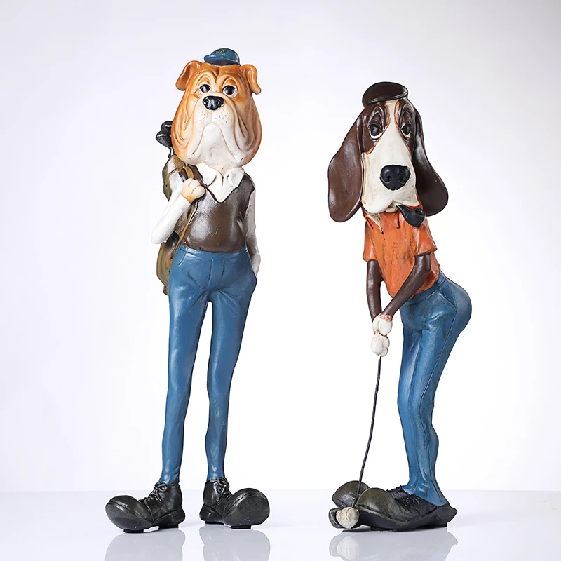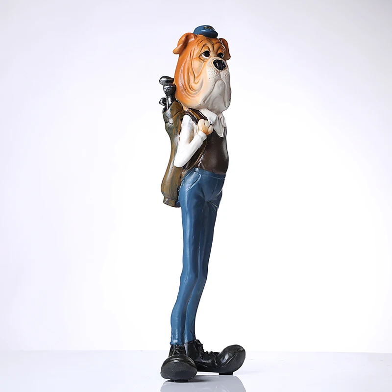 BEST Vintage Sausage Dog Golf Player Statue Personated Resin Bulldog Linksman Sculpture Decoration Art a